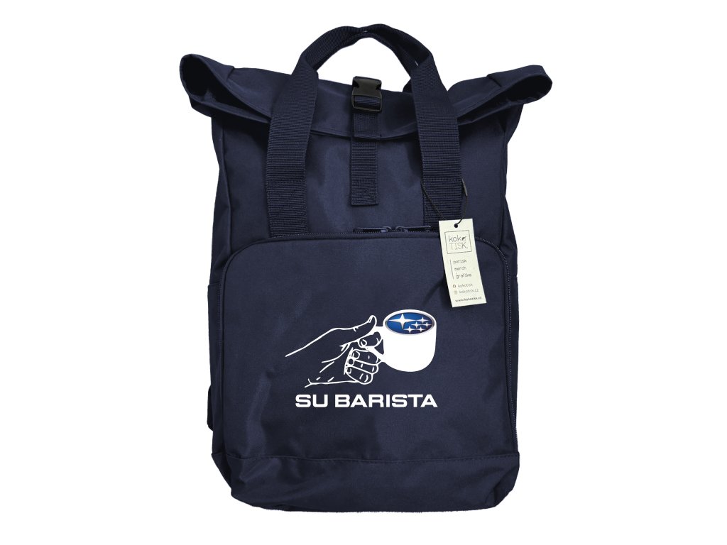 Rolovací batoh ve dvou barevných variantách s originálním motivem “Su Barista”
