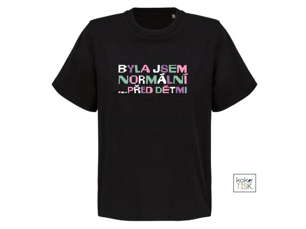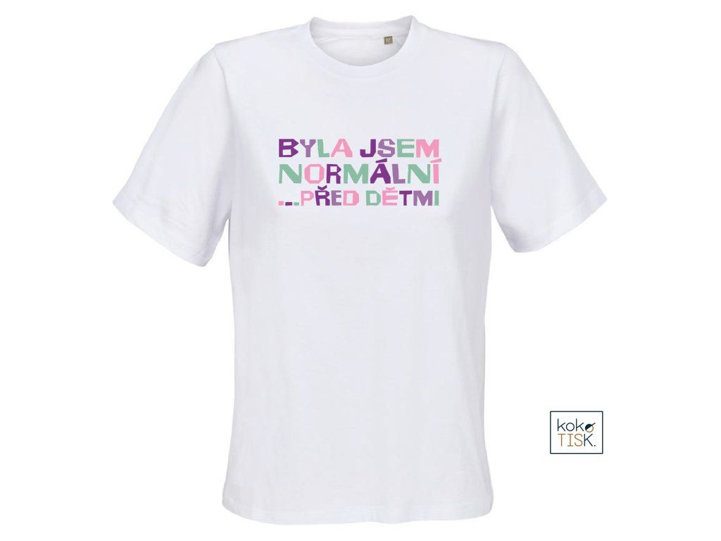Dámské tričko ze 100% certifikované bio bavlny s nápisem “Byla jsem normální... před dětmi“