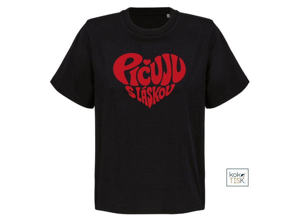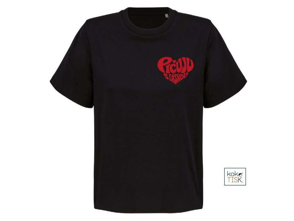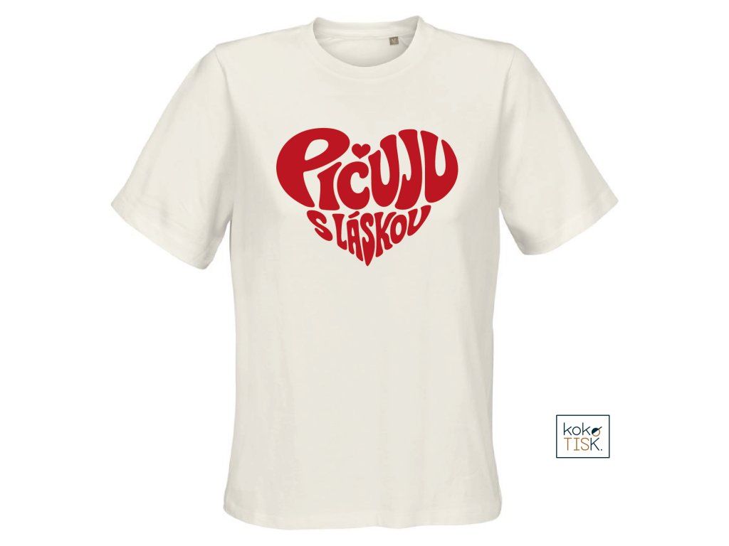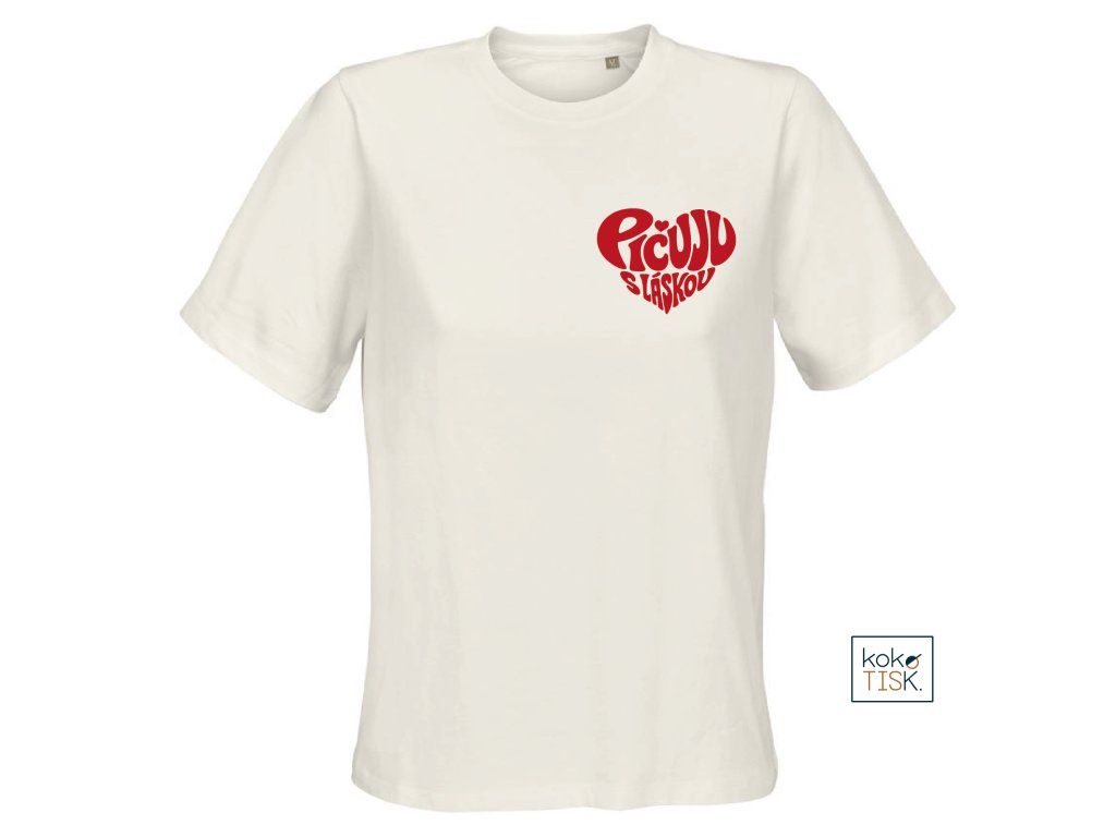 Dámské tričko ze 100% certifikované bio bavlny s nápisem “Pičuju s láskou“ ve tvaru srdce.
