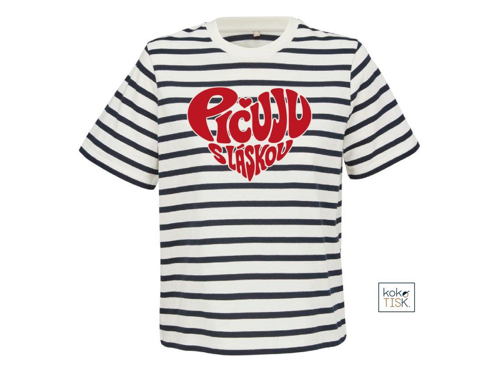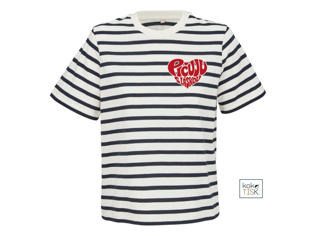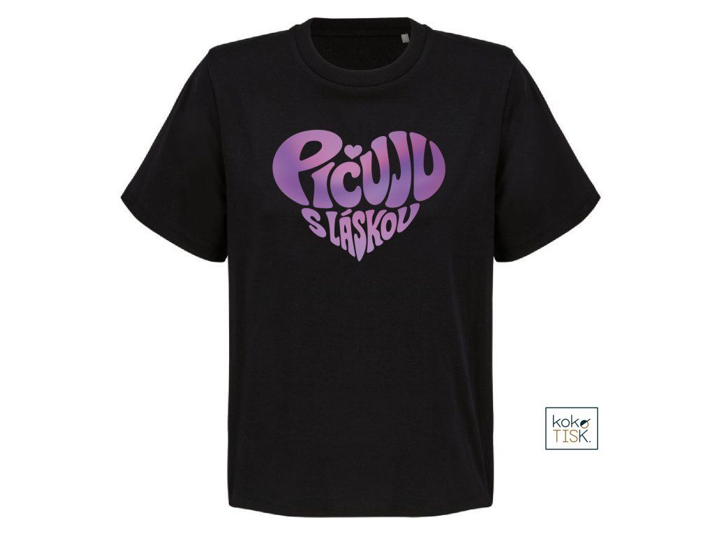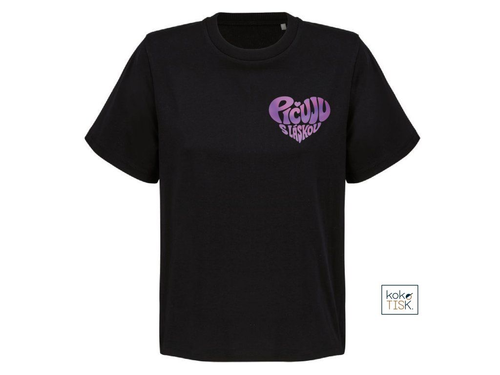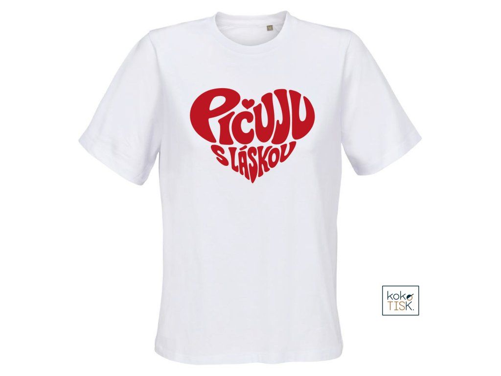 Dámské tričko ze 100% certifikované bio bavlny s nápisem “Pičuju s láskou“ ve tvaru srdce.