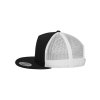 Černo-bílý snapback s rovným kšiltem, bílou síťkou vzadu a logem "Řiť se srdcem"