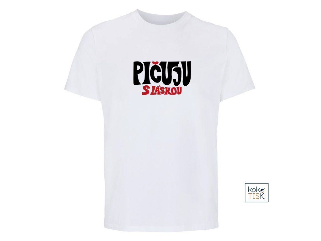 Tričko ze 100% certifikované bio bavlny s nápisem “Pičuju s láskou“ v univerzálním střihu pro táty i mámy.